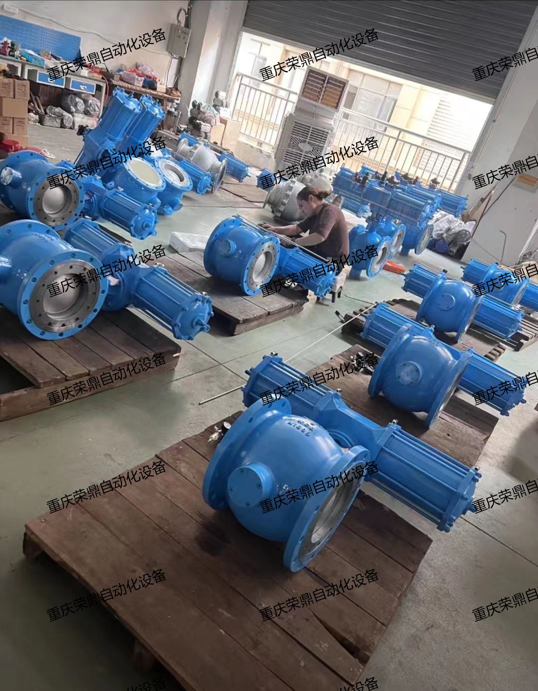 车间师傅们正在抓紧按时交货的阀门调试,安装,发货